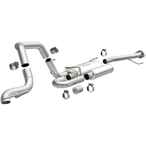 The MagnaFlow Toyota 4Runner Overland Series Cat-Back Performance Exhaust System #19546 will enhance your 4.0L V6 Toyota 4Runner (2003-2024) with MagnaFlow’s renowned deep rumble and dyno-proven performance. MagnaFlow #19546 is weight optimized for additional utility and designed such that its mandrel bent 2.5” diameter main piping is situated more closely to the body than the stock configuration. This combined with a single high-clearance no-tip, passenger-side rear exhaust exit allows for significantly improved ground clearance and departure angles. MagnaFlow exhaust system #19546 is compatible with the most popular bolt-on aftermarket modifications and features our No Drone Technology, which cancels out the natural droning frequencies of the V6 Toyota 4Runner at cruising speeds. This allows for a quiet ride on the highway while retaining the character of your rig’s exhaust note. CNC precision robotic manufacturing enables perfect fitment and hassle-free bolt-on installation. The 100% stainless steel construction of exhaust kit #19546 is covered by MagnaFlow’s limited lifetime construction warranty.