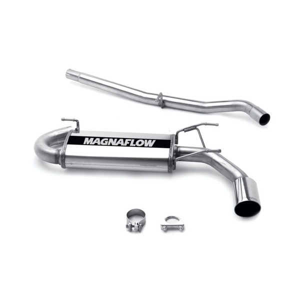 The MagnaFlow 1999-2005 Mazda Miata Street Series Cat-Back Performance Exhaust System 16638 brings out the personality of your 1.8L 1999-2005 Mazda Miata with our signature resonant, powerful engine tone and dyno-proven performance. Thanks to its fast-flowing, mandrel bent 2.5in. main piping and 1 Straight-Through mufflers ending in a Single Straight Passenger Side Rear exit with 4in. Polished Welded-On Double Wall Angle Cut Folded Edge tips, this Mazda Miata exhaust kit has the performance chops to match its sporty sound and appearance. Upgrade your ride to the next level with an exhaust that has the pipes to put other Mazda Miata's to shame. With this system your vehicle will be producing Moderate exterior and Mild interior sound levels while leaving other cars and trucks feeling envious at every stoplight. Exhaust kit 16638 features a cat-back layout that replaces your ride's stock exhaust components from near the catalytic converter on back. Extensive 3D scanning during development has resulted in a direct-fit design that you can easily install yourself. 16638 is produced using CNC precision robotic manufacturing techniques and is backed by MagnaFlow's 1-year limited finish warranty and limited lifetime construction warranty.