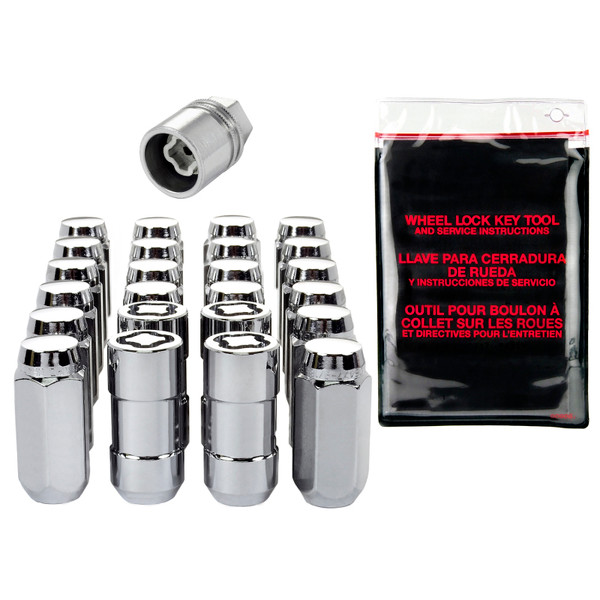 The convenient way to order wheel locks and lug nuts; Contains all the hardware that you need to install 4 wheels and tires.; McGard manufactures wheel locks and lug nuts in the USA to meet or exceed O.E.M. standards for safety and durability.; Presently, McGard is an Original Equipment wheel lock supplier to most automobile brands around the world.; These easy-to-use, one-piece wheel locks function like regular lug nuts, but require a special key tool for installation and removal.; The computer generated key designs allow for an infinite number of key patterns.; McGard lug nuts are guaranteed for life not to rust, chip or peel.; Designed and built for the real world. Think about it, harsh elements, nasty corrosive wheel cleaners, overzealous impact guns, loose fitting lug wrenches and lead-foot drivers. This kind of treatment destroys ordinary lug nuts.; McGard lug nuts can take the punishment and keep your wheels looking beautiful.; Every McGard wheel lock and lug nut is fully machined from restricted chemistry steel made specifically for McGard and through-hardened for its unsurpassed level of security and safety.; For use with steel or aluminum wheels with exposed decorative lug nuts that are tapered at the bottom. This product may contain globally sourced materials/components.