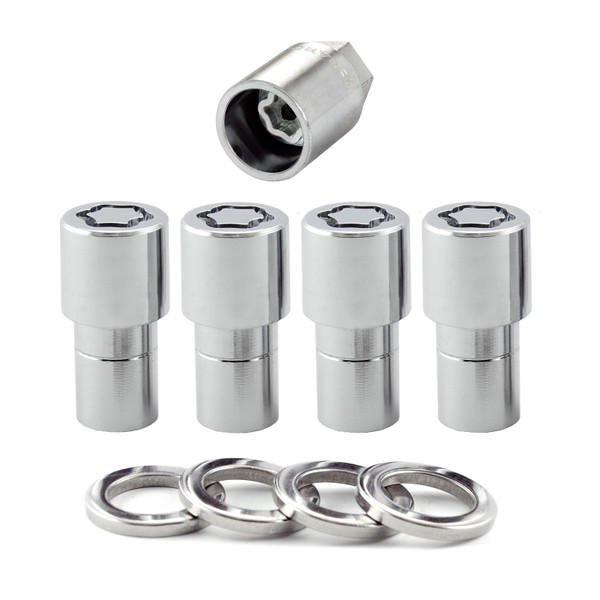 Protecting the world's finest wheels and tires from theft since 1964.; McGard manufactures wheel locks in the USA to meet or exceed O.E.M.; standards for safety and durability.; Presently, McGard is an Original Equipment wheel lock supplier to most automobile brands around the world.; These easy-to-use, one-piece wheel locks function like regular lug nuts, but require a special key tool for installation and removal.; The steel collar on the user friendly key guides the key into the lock pattern.; The collar holds the key in alignment for easy installation and removal.; The computer generated key designs allow for an infinite number of key patterns.; The extra narrow pattern groove on the lock resists the intrusion of removal tools into the pattern.; Every McGard wheel lock is fully machined from restricted chemistry steel made specifically for McGard and through-hardened for its unsurpassed level of security.; McGard's plating process includes several layers of nickel and one layer of microporous chrome producing a superior finish while protecting against rust.; Long .950 Shank length for use with custom replacement aluminum wheels that are at least 7/8 thick, but less than 1-1/4 thick at the wheels stud hole.; Contains polished stainless steel washers.; This product may contain globally sourced materials/components.