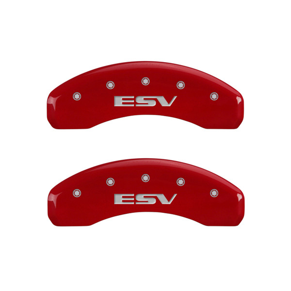 MGP 4 Caliper Covers Engraved Front Escalade Engraved Rear ESV Red finish silver ch - 35015SESVRD