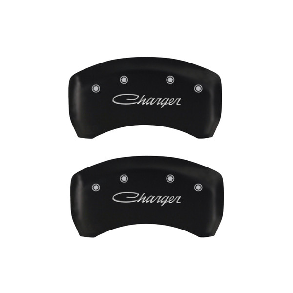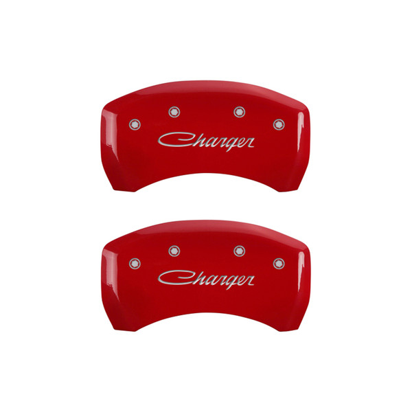 MGP 4 Caliper Covers Engraved Front & Rear Cursive/Charger Red finish silver ch - 12162SCHSRD