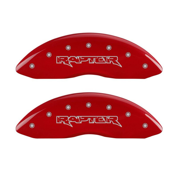 MGP 4 Caliper Covers Engraved Front & Rear Raptor Red finish silver ch - 10219SRPTRD