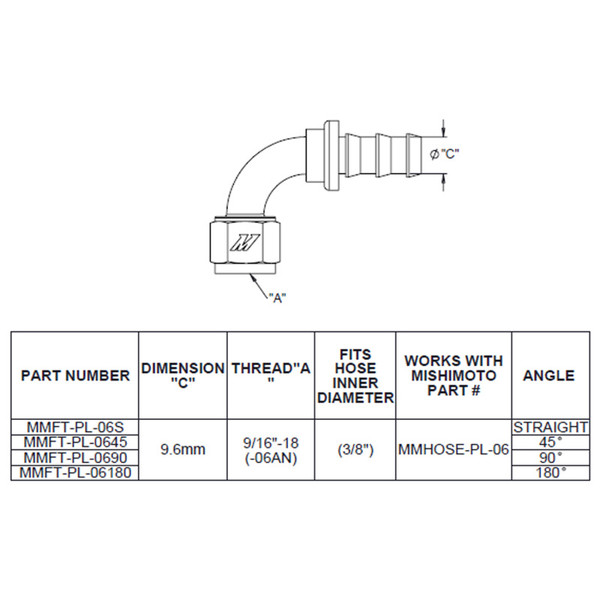 Mishimoto 180 Degree Push Lock Fitting - 6AN - MMFT-PL-6180