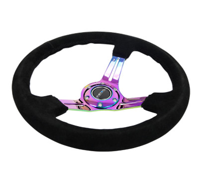 NRG Reinforced Steering Wheel (350mm / 3in. Deep) Blk Suede/Blk Stitch w/Neochrome Slits