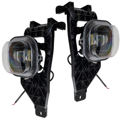 This is a pair of direct-replacement High-Performance LED Fog Lights for the 2007-2014 GMC Sierra 1500/2500/3500 truck applications. These direct-fit fog lights feature factory mounting and plug-and-play wiring connections for easy, trouble-free installation. These amazing LED units push out approximately 1500 lumens which will vividly light up the road while only drawing 15W of power per light. The new rugged solid-state LED design can operate in the worst possible conditions. Each light utilizes a durable PMMA lens and Polycarbonate lamp housing to withstand impact. The solid-state LED emitters withstand the worst shock and vibration while the epoxy-sealed electronics prevent moisture and corrosion. The aggressive blacked-out look gives your vehicle a modernized appearance and improves night-time visibility at the same time.