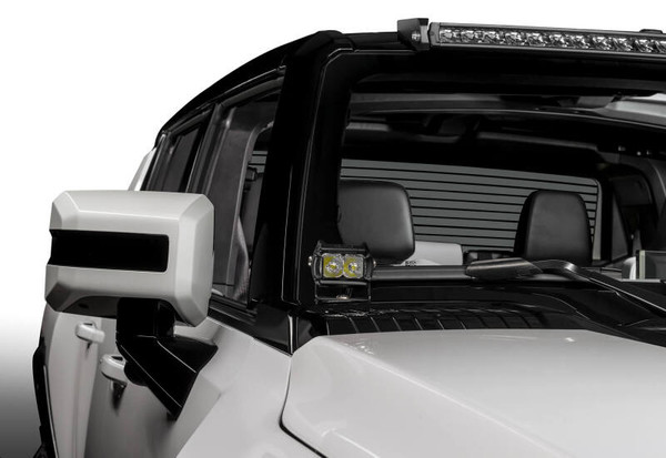Easily add LED Pod Lights to the lower A-pillar/ hood line of your Hummer EV! These rugged steel brackets are galvanized and powder-coated for the most extreme environments. These work with any standard 3” Pod Lights but we HIGHLY recommend the ORACLE VEGA™ Pod Lights for the brightest lights you can buy for the best possible value. Installation: Uses factory hardware for mounting to the vehicle. Wiring: Can be connected to factory Aux Switches (will require extending 16AWG cables) if you do not have the factory Aux switches, we recommend using the ORACLE wiring harness. (Part# 5890-LTH)