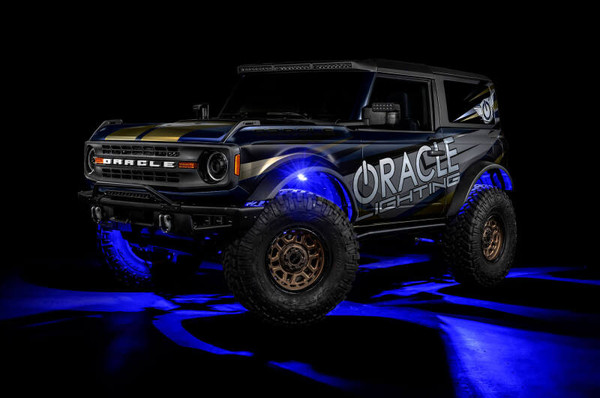 This all-new design has LED emitters which are positioned to cover a massive 230 degrees angle, providing the best coverage of any LED Rock Light on the market. Previously users would need to install multiple LED Rock Lights in each wheel well to get adequate lighting coverage. No longer is that an issue with the new ultra-wide coverage of the new ORACLE RGB+W LED Rock Lights. Change Colors, Control Brightness, access strobing patterns, and sync with music! This new oversized 22 LED RGB+W "Dual-Control" ORACLE Underbody LED Rock Lights now features Bluetooth Smartphone control PLUS Wireless Remote. This kit now features a TRUE white 6000K color and has a unique design that uses 3 separate emitters to cover the entire wheel well area. Our ColorSHIFT Technology allows you to select from thousands of colors! Control the functions and colors of your kit via the Bluetooth App, or Remote! Installation is easy with waterproof Plug & Play Connectors that easily connect the individual rings to the central control box. Battery connection leads include ring terminals and in-line fuse for simplified wiring installation. There is also a pre-wired On and Off switch that can be used to manually turn the system on and off for maximum control.