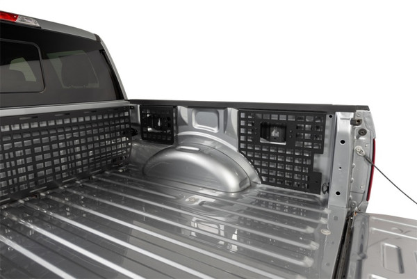Secure your cargo in the back of your truck bed with this next level one of a kind truck bed storage organizing system.  New from Putco are the Molle Panel inside truck bed panels system. This amazing cargo storage system is perfect for latching down nearly anything you want to secure in place like Molle bag, trail gear, construction gear, jacks, or anything your heart desires. Available for the bulkhead, side bed and tailgate area. Choose from getting the entire set or just getting one side. Great for Overlanding pickup trucks or work trucks to hang and organize gear, tools and more. These truck bedside organizers called molle panels are great for storing your gear and organizing your truck bed whether you use your pickup for work or play. Plus the are a must-have for the overland truck for your next outdoor adventure.Constructed out of durable CNC cut 10 gauge aluminum that is finished with a mini-textured black powder-coat. This American made panel system works with most industry-leading mounting accessories like Quickfist, Kolpin, Molle, and much more. Also, this come is compatible with most soft roll-up and hard fold cover on the market.Installing a Molle panel is simple with no drilling or cutting of any kind and its custom design for your year, make and model allows you to use your OEM tie-down area and other standard OEM features of your truck. Each panel is backed by a three-year warranty. So if you are tired of your cargo rolling around and want it secured in place the Putco Molle Panels are for you.