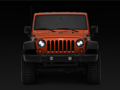 Upgrade the appearance and visibility of your Jeep Wrangler with a set of Axial LED Halo Headlights. These Axial Headlights feature a great looking integrated dual function accent halo. The halo functions as both a Day Time Running Light (DRL) and as a Turn Signal Indicator. The halo glows white as a DRL and amber when active as a turn signal. These Axial LED Headlights will certainly be much brighter than your stock headlights and feature a 6000K cool white color temperature. Featuring premium high output LEDs, these Axial Headlights out put 5400 lumens for the High Beams and 3600 lumens for the Low Beams. With a 60% lower power consumption than standard headlights, these LED Lights have a life span of up to 50,000 hours. Designed to perform in the harshest of elements, these Axial Headlights feature a rugged housing with a tough as nails clear polycarbonate lens. Each Headlight is epoxy sealed to prevent moisture from harming the state of the art electronics found inside. These Axial LED Headlights can take just about anything the trail can throw at them. With the included H4 - H13 wiring harness adapters (needed for 2007+ models) installation can be completed in under 30 minutes. It should be noted that the DRL/Turn Signal halo light will require additional wiring for operation. Installation instructions are included. These Axial 7-Inch Round LED Halo Headlights pass both DOT (U.S. Department of Transportation) certification and SAE (Society of Automotive Engineers) certification requirements making legal for street use. These aftermarket LED Headlights are intended for use with factory halogen headlight equipped models. In order to use these aftermarket LED Headlights on a Jeep that is already factory equipped with LED headlights, you will require a set of factory halogen headlight buckets – not included.