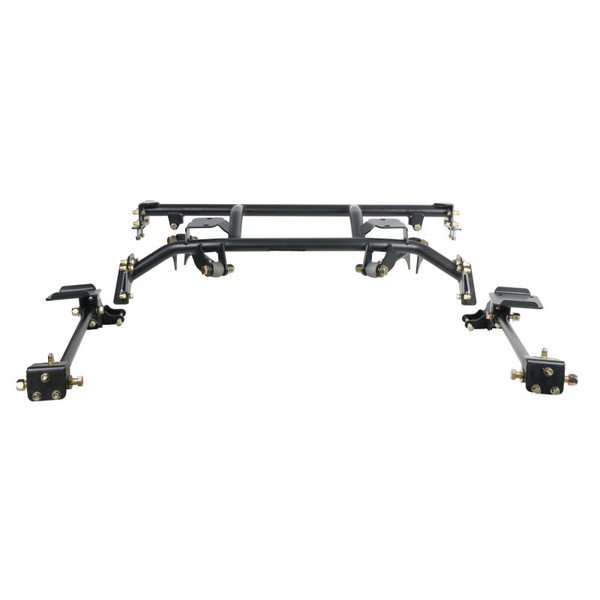Bolt-On 4-Link with double adj. bars for 1962-1967 Chevy II Nova. Includes R-Joints, bars, bolt-on cradle, axle brackets and hardware. Powder coated black. For use with Shockwaves or Coil-Overs, sold separately.