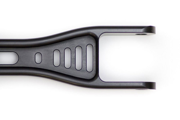 GTR R35 Rear Toe Links (RTA) allow for an increased range of rear toe adjustment, necessary for lowered street cars and performance alignments for racing. Using FEA (Finite Element Analysis) our CNC milled 6061-T6 Billet Aluminum arms are designed to exceed factory strength and durability. SPL Parts' exclusive Double Adjuster is comprised of electroless nickel plated 4130 Chromoly along with 6061-T6 Aluminum clamps to reduce weight and prohibit corrosion, while offering quick and easy adjustment. Blue Anodized Titanium hardware shaves even more unsprung weight from the arms, without compromising strength. PTFE lined rod ends are used to provide quiet operation, lower friction, smoother articulation, and eliminates bushing deflection under load. These rod ends are self-cleaning and offer robust reliability for street and track use.Purchase with our SPL Parts Rear Camber Links (#SPL RLL R35) and SPL Parts Eccentric Lockout (#SPL EL R35) kit for total rear camber and toe alignment with "zero-slip". Sold as a pair.Made in the USA. SPL Parts Nissan GTR R35 Adjustable Rear Toe Arms Feature: Lightweight Aluminum and Titanium construction Electroless nickel plated 4130 Chromoly Double Adjuster for quick adjustment 6061-T6 Aluminum Rotating clamp design allows for easy access to lock down your alignment settings Computer Aided Design with Finite Element Analysis Blue Anodized Titanium socket head cap screws Teflon lined rod ends Black Anodized for a durable finish Applications: 2008+ Nissan R35 GT-R Need a replacement rod end? SPL Rod Ends Installation Instruction: SPL Rear Toe Links