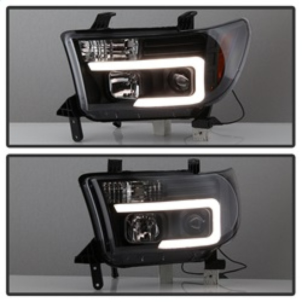 Spyder 08-13 Toyota Sequoia Projector Headlights - Light Bar DRL - Black PRO-YD-TTU07V2-LB-BK - 5085344