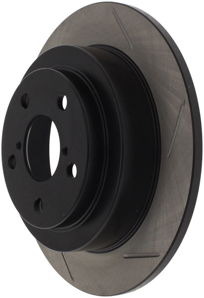 StopTech Slotted Sport Rotors are 1-piece direct replacement brake discs for factory brake systems and stock calipers that look great behind your wheels – and offer significantly improved braking performance. The unique slotting aids with heat and brake dust dispersal; prevents glazing of the pads; adds bite and improves wet and dry braking performance. Built to last; the black e-coating provides protection from corrosion and the high carbon metallurgy (in most applications) offers quieter operation; better crack resistance and increased performance.