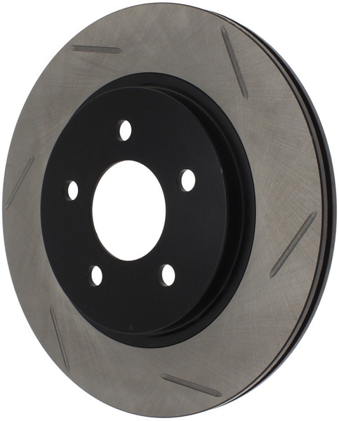 StopTech Slotted Sport Rotors are 1-piece direct replacement brake discs for factory brake systems and stock calipers that look great behind your wheels – and offer significantly improved braking performance. The unique slotting aids with heat and brake dust dispersal; prevents glazing of the pads; adds bite and improves wet and dry braking performance. Built to last; the black e-coating provides protection from corrosion and the high carbon metallurgy (in most applications) offers quieter operation; better crack resistance and increased performance.
