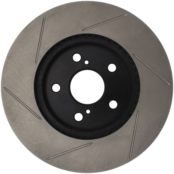 StopTech Slotted Sport Rotors are 1-piece direct replacement brake discs for factory brake systems and stock calipers that look great behind your wheels – and offer significantly improved braking performance. The unique slotting aids with heat and brake dust dispersal; prevents glazing of the pads; adds bite and improves wet and dry braking performance. Built to last; the black e-coating provides protection from corrosion and the high carbon metallurgy (in most applications) offers quieter operation; better crack resistance and increased performance.