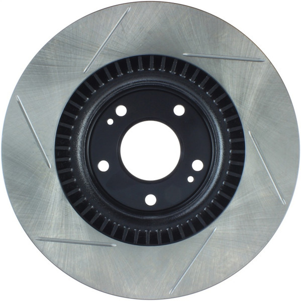StopTech Slotted Sport Rotors are 1-piece direct replacement brake discs for factory brake systems and stock calipers that look great behind your wheels – and offer significantly improved braking performance. The unique slotting aids with heat and brake dust dispersal; prevents glazing of the pads; adds bite and improves wet and dry braking performance. Built to last; the black e-coating provides protection from corrosion and the high carbon metallurgy (in most applications) offers quieter operation; better crack resistance and increased performance.