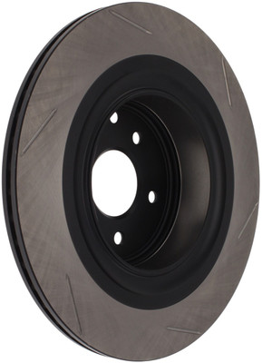 StopTech Slotted Sport Rotors are 1-piece direct replacement brake discs for factory brake systems and stock calipers that look great behind your wheels – and offer significantly improved braking performance. The unique slotting aids with heat and brake dust dispersal; prevents glazing of the pads; adds bite and improves wet and dry braking performance. Built to last; the black e-coating provides protection from corrosion and the high carbon metallurgy (in most applications) offers quieter operation; better crack resistance and increased performance.