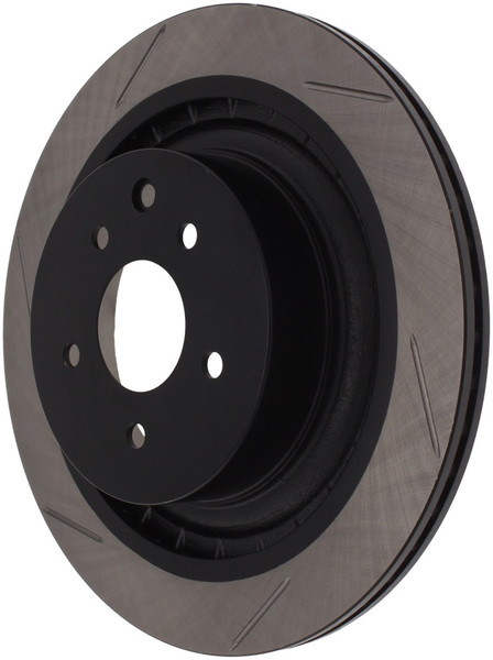 StopTech Slotted Sport Rotors are 1-piece direct replacement brake discs for factory brake systems and stock calipers that look great behind your wheels – and offer significantly improved braking performance. The unique slotting aids with heat and brake dust dispersal; prevents glazing of the pads; adds bite and improves wet and dry braking performance. Built to last; the black e-coating provides protection from corrosion and the high carbon metallurgy (in most applications) offers quieter operation; better crack resistance and increased performance.