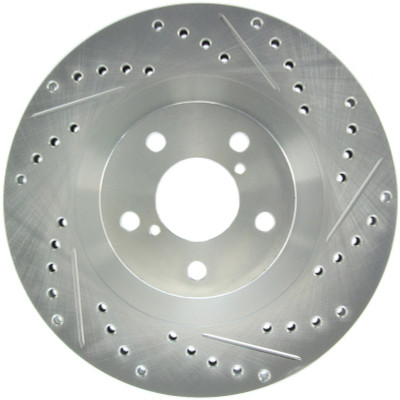 StopTech Drilled and Slotted Sport Rotors are 1-piece direct replacement brake discs for factory brake systems and stock calipers that look great behind your wheels – and offer significantly improved braking performance. The unique cross-drilling and slotting aids with heat and brake dust dispersal; prevents glazing of the pads; adds bite and improves wet and dry braking performance. Built to last; the black e-coating provides protection from corrosion and the high carbon metallurgy (in most applications) offers quieter operation; better crack resistance and increased performance.