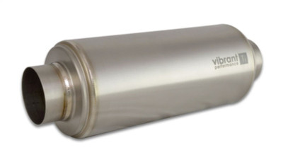 Vibrant Performance standard bottle style resonators are round bodied, densely packed with our premium multi-layered sound absorption materials, and manufactured from 304 stainless steel and CP1 Titanium for optimum durability and corrosion resistance. Vibrant Performance standard bottle style resonators have a sleek design that is optimal for easy installation and work to maximize the reduction of exhaust db levels.
