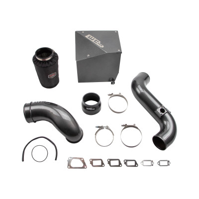WCFab 2011-2016 LML 6.6L Duramax Stage 2 Intake Kit with Air Box. This high flow, fabricated aluminum intake pipe and air box enclosure with dry filter assembly replaces the restrictive plastic factory parts on your diesel for improved engine performance. All new design significantly increases air flow to your turbo producing improved horsepower and torque, quicker throttle response, and cooler intake temperatures by drawing cold air through the inner fender. All aluminum construction features large diameter 4" piping with smooth aerodynamic bends to improve intake air velocity, volume, and provide more aggressive engine and turbo sound during acceleration. High quality hardware, silicone boot, seals, and stainless steel t-bolt clamps ensure optimum durability and ease of installation. Removable air box lid elementallows for easy visual inspection and maintenance of your WCFab filter with included hydrophobic pre-filter cover, to help keep your MAF sensor, turbo, and engine airways contaminant free. - - Includes High Flow 4.8 in. Cast Aluminum Turbo Intake Horn which removes restrictions in the OEM setup to improve turbo spool and top end power and eliminates factory resonator for improved appearance and more aggresive turbo sound. This High Flow 4.8 in. horn is fully compatible with OEM and upgraded drop in VGT style turbochargers. Full assembly finished in your choice of WCFab's signature custom powder coat colors for a look as unique as your truck. Not compatible with aftermarket LML Y-bridges that change the manifold / bridge inlet from original factory (driver side inlet) location. - - NOTE: 2011 MODEL YEAR TRUCKS MUST UPDATE PCV Regulating Valve to 2012-2016 model year spec to allow correct fitment and compatibility with this part.