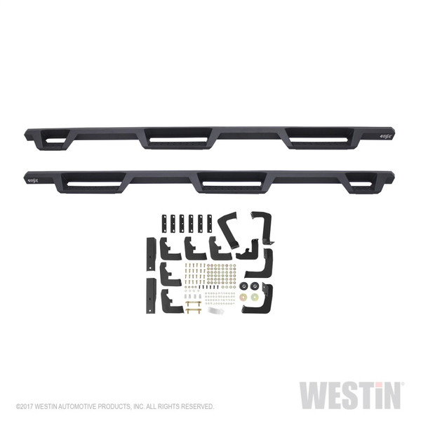 Westins HDX Drop Wheel-to-Wheel Nerf Step Bars feature a notched bar design with a 3rd step location for easy bed access. They provide strong traction with over 2 inches more of toe/heel step area than our Westin's HDX Drop W2W Nerf Step Bars include an added 3rd step location for easier bed area and cargo access. HDX also boasts more than 2 inches of added toe/heel step area which far exceeds all other competitive brands. HDX's notched bar design construction results in a reliable long lasting Bar, with a solid fit and a rugged look. The added length of HDX Drop Wheel-to-wheel Nerf Step Bars provides users with better cab access and better footing and traction for both drivers and passengers. Product includes mount kit and is offered in a variety of vehicle specific applications. Bolt-on installation so no drilling required. Mount kit included. Westin's exclusive Isolator Bracket supports the step bar past the truck cab, a feature that competitors do not offer. Without an Isolator Bracket, the step area that extends past the vehicle is left unsupported. Our unique design provides extra bed support without resulting in annoying creaking sounds.