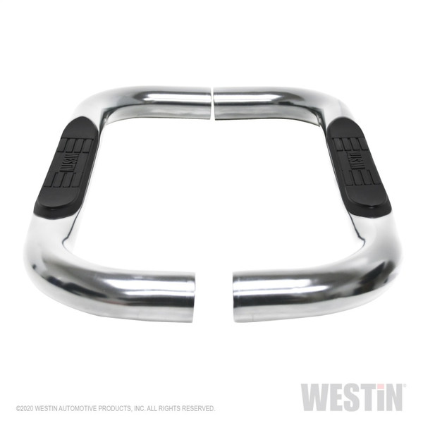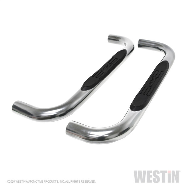 Westin(TM) E-Series Nerf Bars are made of 3in. diameter round tubing and are vehicle specific designs. Step design and mounting technique varies by application (mounting kit included). They feature recessed area mounted step pads unique to E-Series Nerf Bars feature the Westin(TM) brand name and are UV resistant.