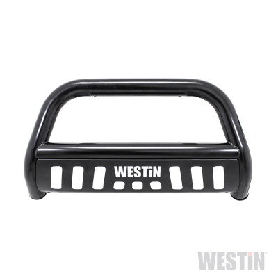 Westin(TM) E-Series Bull Bars are a front-end light bar designed for trucks and larger model SUVs. It is made of 3 diameter polished stainless steel tube. It mounts utilizing existing vehicle mounting points and installation does not require any drilling to the vehicle frame. Comes complete with mounting kit the Westin(TM) E-Series Bull Bar provides a mounting point for 2 auxiliary lights up to 6 in diameter. It features a die-cut Westin(TM) block logo design on the stainless steel skid plate unique to the Westin(TM) E-Series Bull Bar.