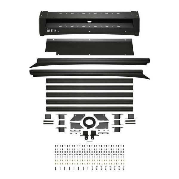Introducing the all-new Westin Mesa Roof Rack, the ultimate companion for adventure enthusiasts and outdoor explorers! Crafted with precision engineering using high-quality extruded aluminum. This premium material offers unparalleled strength, durability, and corrosion resistance, making it the perfect choice for outdoor enthusiasts seeking a reliable and long-lasting roof rack. The multi-purpose cargo management system of the Westin Mesa Roof Rack is designed with flexibility in mind. Its 2.5in. x 1.5in. adjustable crossbars allow you to customize the setup according to the size and shape of your cargo. It features a removable 16-gauge aluminum wind deflector panel and 11-gauge aluminum visor side frames that serves a dual purpose. First, the wind deflector enhances aerodynamics by redirecting airflow, reducing drag, and minimizing wind noise during your travels. Enjoy a quieter and more fuel-efficient journey, all while maintaining a sleek and stylish appearance. Second, removing the wind deflector panel reveals a convenient light mount channel. This innovative design feature allows you to easily install auxiliary lighting to illuminate your path during nighttime adventures or low-light conditions enhancing your visibility and safety. The Mesa Roof Rack is built to last and features an electrostatic base coat for superior corrosion resistance, in combination with a durable textured black powder coat finish. All Mesa Roof Racks come complete with all necessary hardware to provide a hassle-free installation, while providing a full 3-Year warranty. Whether you're planning a weekend camping trip, a cross-country road adventure, or simply need extra storage space for your gear, this roof rack is the perfect solution.