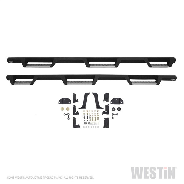 Westin's HDX Stainless Drop W2W Nerf Step Bars are built with corrosion-resistant, textured black painted stainless steel designed to last under the toughest of conditions. Built with 1-piece construction, these Nerf Step Bars feature a notched bar design with a 3rd step location for easy bed access and provide over 2 more inches of toe/heel step area than our competitors. The longer length of our HDX Stainless Drop WTW Nerf Step Bars provides added vehicle accessability, with the bar still fitting tight to your vehicle's rocker panel for a solid fit and rugged look. Product includes a set of installed stainless steel step pads as well as a set of black mild steel step pads so you can switch plates out based on preference. Step plates are rust resistant and provide maximum traction. Bolt-on installation so no drilling is required. Includes Mount Kit. Westin's exclusive Isolator Bracket supports the step bar past the truck cab, a feature that competitors do not offer. Without an Isolator Bracket, the step area that extends past the vehicle is left unsupported. Our unique design provides extra bed support without resulting in annoying creaking sounds.