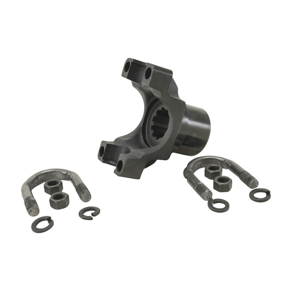 Yukon extra HD yoke for Chrysler 8.75" with 29 spline pinion and a 1350 U/joint size. 3.625" snap ring span, 1.118" cap diameter. Outside snap ring. This yoke uses U-bolts. All Yukon yokes come with a one year warranty against manufacturing defects.